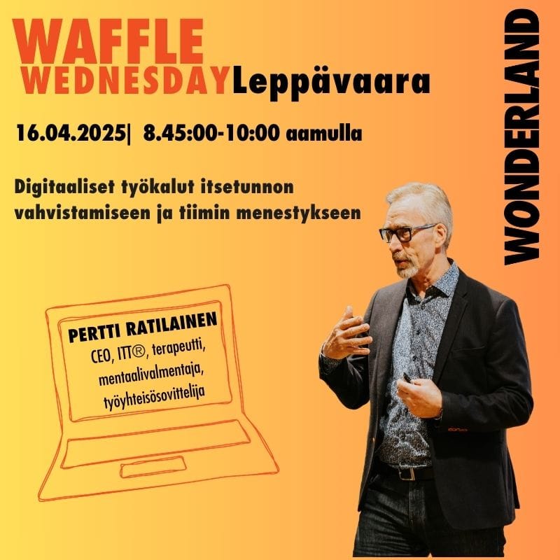 Seuraava Waffle Wednesday pidetään Wonderland Coworking Vallilassa, jossa pääsemme kuulemaan Pertti Ratilaisen inspiroivan puheenvuoron. Pertti on toimitusjohtaja, ITT®️-terapeutti, mentaalivalmentaja, työyhteisösovittelija, valmentaja sekä yrittäjä jo vuodesta 2008. Pertin intohimo on auttaa ihmisiä menestymään auttamalla heitä löytämään potentiaalinsa sekä mahdollisuutensa Mitä odottaa? Tunnista ja tiedosta omat arvot, vahvuudet ja…
