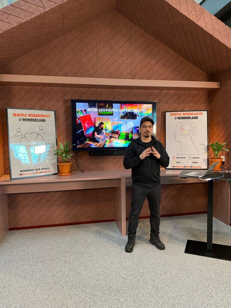 Vuoden 2022 ensimmäisenä Waffle Wednesdaynä 9.2. vieraanamme oli kuvataiteilija Ville Räty. Hän piti puheen luovuudesta ja sen ruokkimisesta.